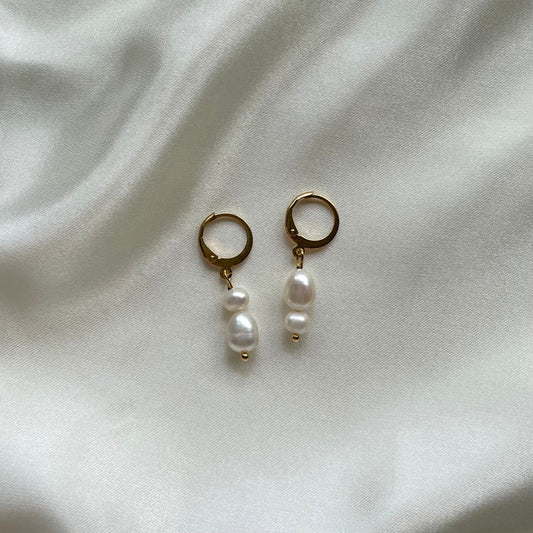 Mixed size stacked freshwater Pearl huggie hoop earrings