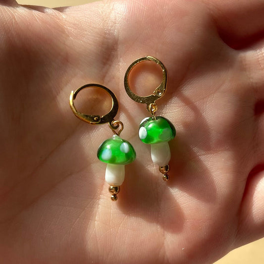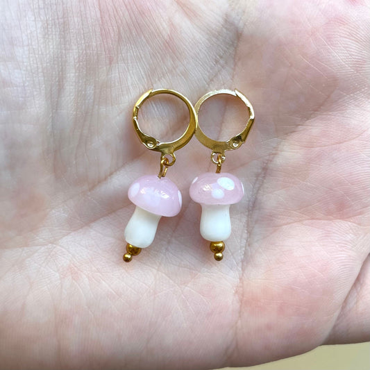 Glass mushroom huggie hoop earrings