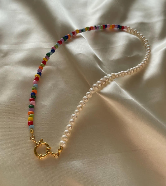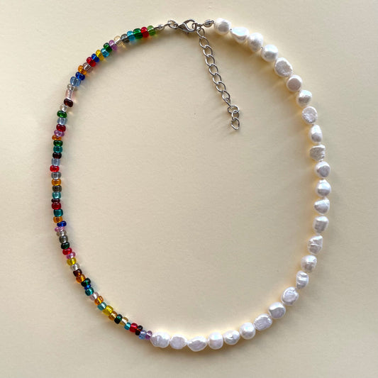 Half and half colourful Pearl necklace