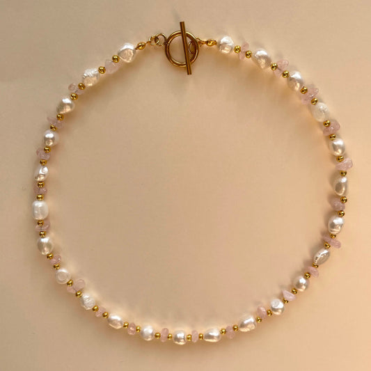 Freshwater Pearl rose quartz chip necklace