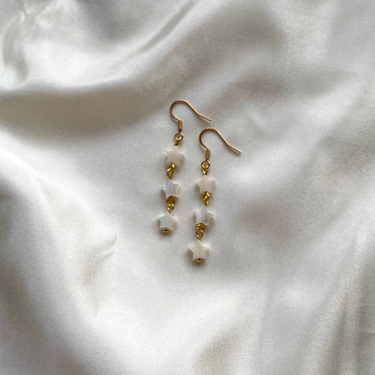 Long pearlescent shell star huggie hoop earrings