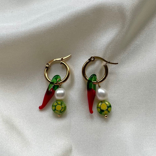 Millefiori and chilli gold huggie hoop earrings