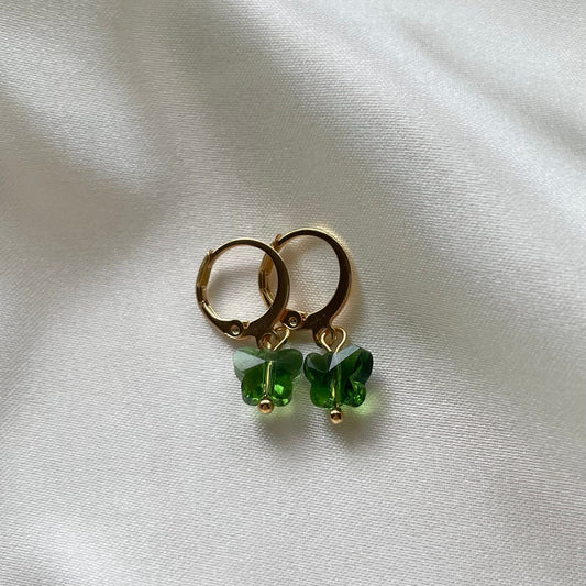 Green butterfly huggie hoop earrings