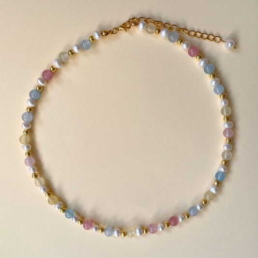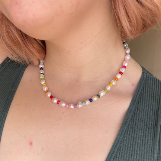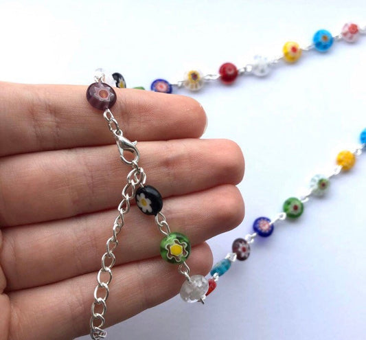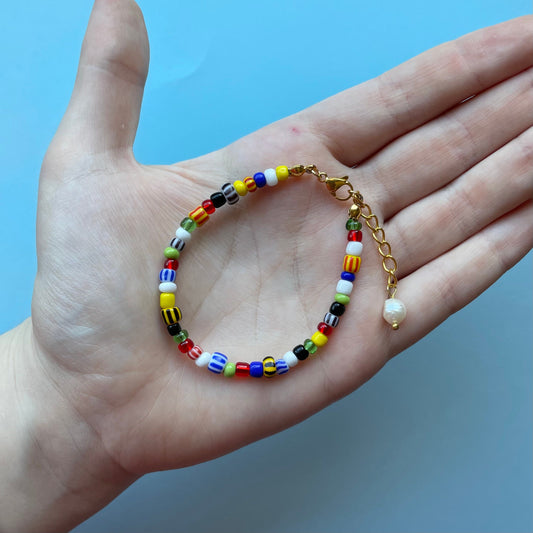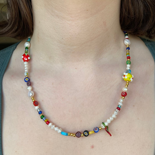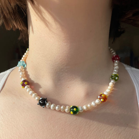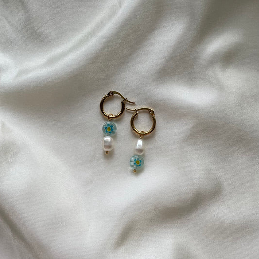 Millefiori freshwater Pearl gold huggie hoop earrings