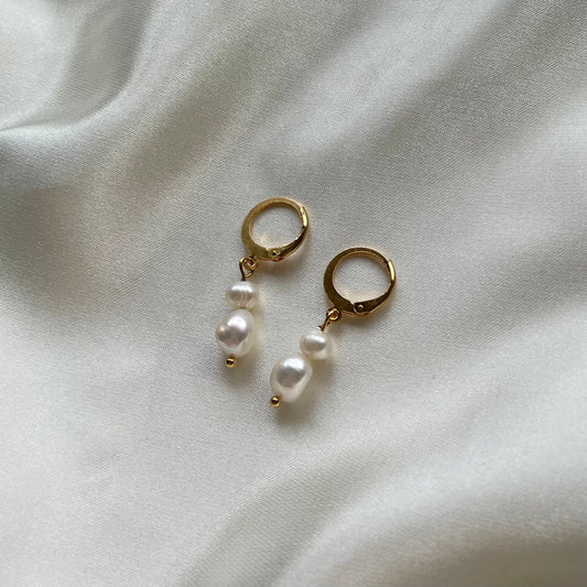 Mixed size stacked freshwater Pearl huggie hoop earrings